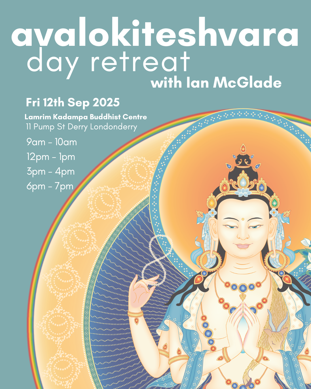 9am – 7pm | Fri 12th Sep 2025 | £10 or £3 per session | Lamrim Kadampa Buddhist Centre, 11 Pump Street, Derry / Londonderry