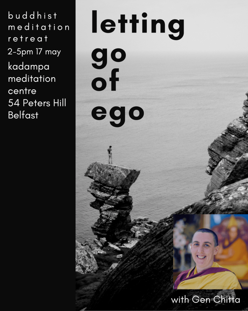 In this afternoon meditation retreat with Buddhist nun Gen Chitta we will explore special Buddhist contemplations and Meditations that help us let go of relating to ourself in negative, unhealthy and self destructive ways. We can learn to loosen, and finally abandon, grasping at an ordinary limited or exaggerated Ego, that leads to feeling self conscious and anxious, and instead feel and sense of burgeoning inner freedom and confidence.