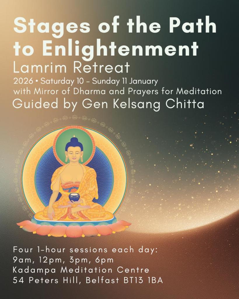 10 – 11 January 2026 | £24 for all, £12/day or £4/session | Kadampa Meditation Centre, 54 Peters Hill, Belfast