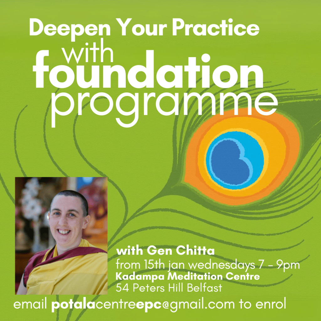 FP is a tried and tested way to gain a deeper understanding of the meaning of Buddha’s teachings, maintain a daily meditation practice that is both focused and powerful, and make genuine spiritual progress. If you have been coming to classes regularly and have been getting a lot out of your meditation classes but feel you want to go a bit deeper with your study and practice – the systematic study of an essential Buddhist text on FP may be a perfect next step for you.