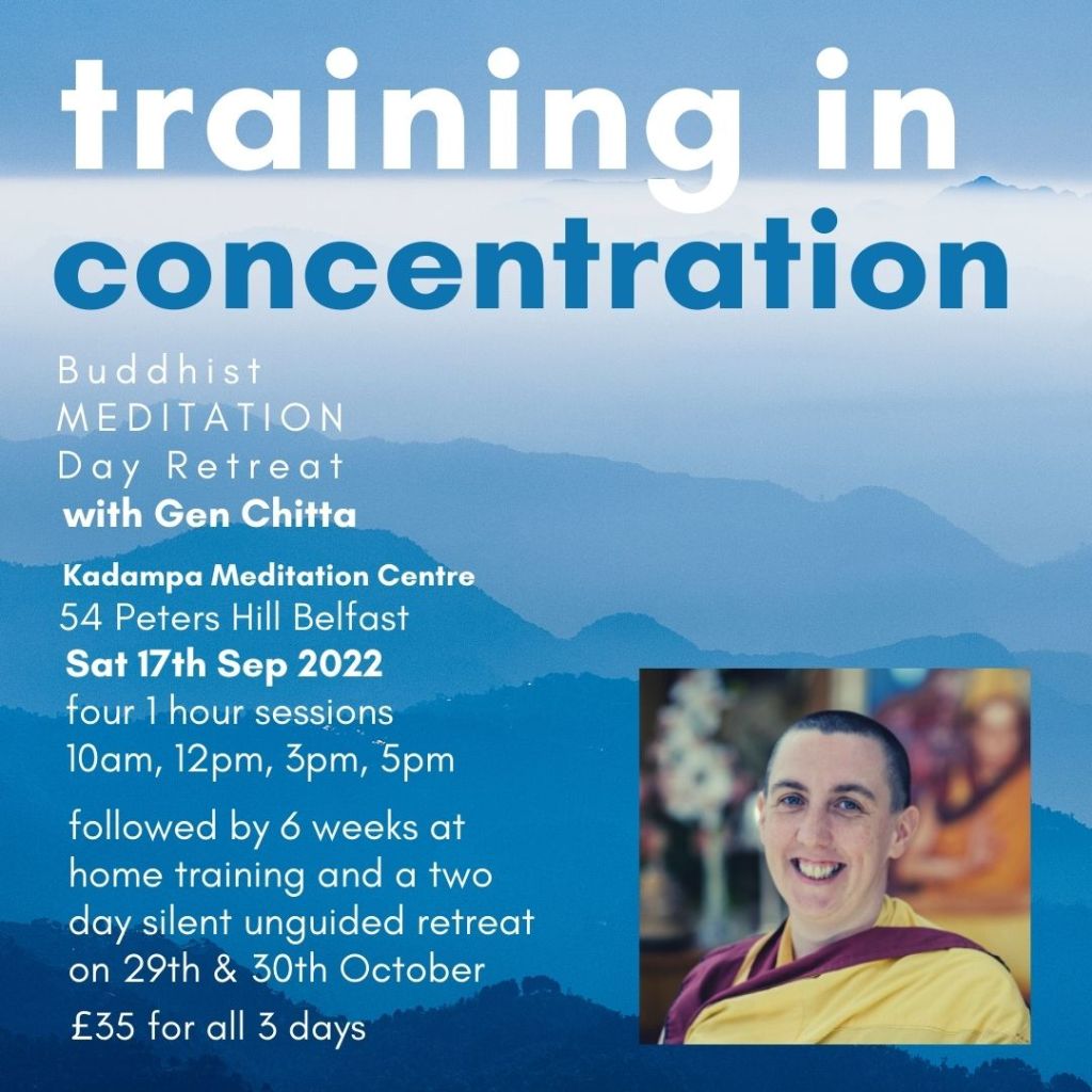 Saturday 17th September 2022 | 10am – 5pm | £35 | includes two day silent unguided retreat on 29th & 30th October at Kadampa Meditation Centre 54 Peters Hill Belfast BT13 1BA.