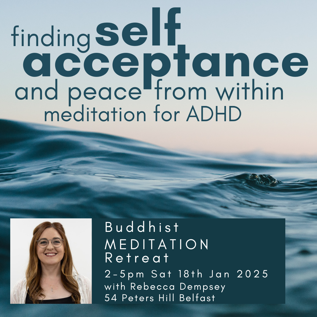 In this half day course, Buddhist practitioner Rebecca Dempsey will share, through her own experience with meditation and ADHD, how finding inner peace amongst the chaos is completely possible. Not only that, but through Buddhist teachings, we can reframe how we view ourselves and begin a journey to self acceptance.